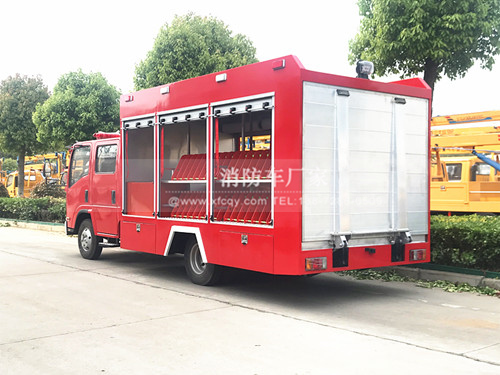 這款車型采用五十鈴700P底盤打造而成、五十鈴150馬力發(fā)動(dòng)機(jī),車輛尾部配備版遙控液壓尾門操作,方便快速的操控機(jī)器人上下車,車身兩旁配備了消防水帶固定架,方便存儲(chǔ)更多的水帶、前部設(shè)定了各種消防器材或者手抬消防泵器材室。